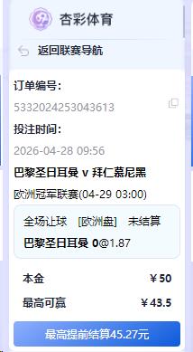 [|足球赛事] 【实战推荐】欧冠杯4-29 03:00巴黎圣日耳曼VS 拜仁慕尼黑推大巴黎赢盘